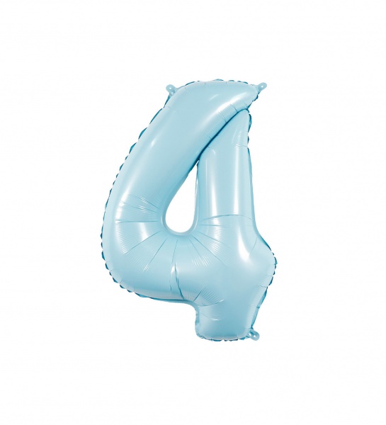 Fóliový balónek číslo 4 světle modré o velikosti 80 cm (nenafouknutý produkt).Perfektní pro oslavu významných milníků, vytváří slavnostní prostředí. Hodí se pro oslavy výročí nebo narozenin.