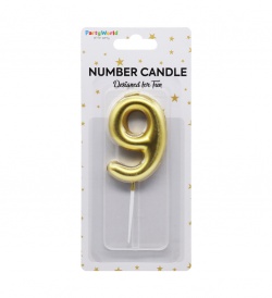 E-shop > Oslavy a narozeninové párty > Svíčky > Dortová svíčka - číslo 9, zlatá