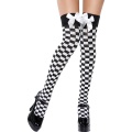 Černo-bílé kostkované punčochy s bílou mašličkou.