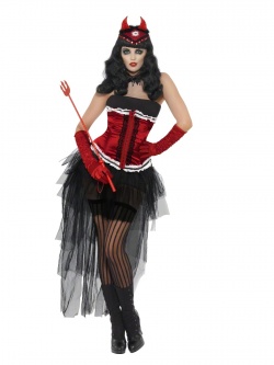 Krásný kostým Pekelné Princezny obsahuje rafinovanou černou sukni, korzet a podprsenkový pás.