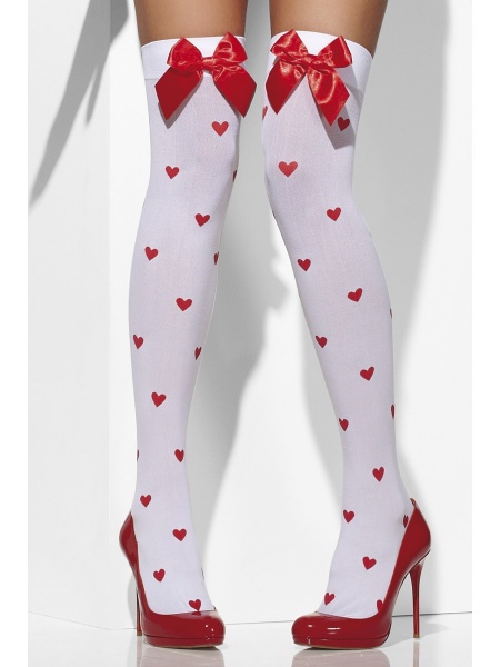 E-shop > Doplňky ke kostýmům > Boa, rukavice, punčochy a další > Punčocháče a punčochy > Punčochy bílé - červená srdíčka a mašle