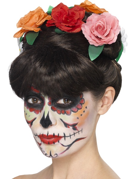 Paruka s růžičkami, která je skvělým doplňkem ke kostýmu na oslavu Dne mrtvých nebo na halloweenskou párty.