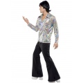 Skvělý kostým, vhodný pro retro i disco párty, je složen z barevné košile ve stylu 70.let a černých kalhot do zvonu.