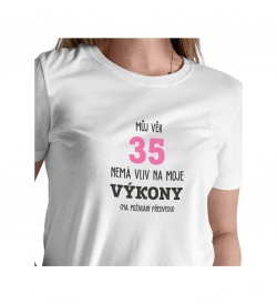 Dámské tričko bílé - Můj věk 35 nemá vliv na moje výkony