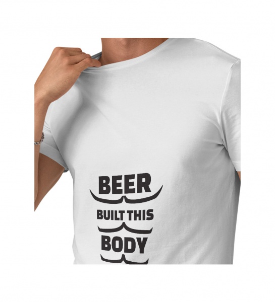 Pánské triko bílé barvy “Beer built this body” je ideální pro ty, kteří milují pivo a nic jiného prakticky nepijí!Skvělý dárek na narozeniny!Tričko je ze 100% bavlny.Je ideální na každodenní nošení.