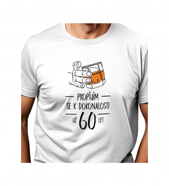 Pánské triko bílé - Propíjím se k dokonalosti už 60 let