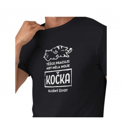 E-shop > Dárky s potiskem > Trička > Trika pro muže > Pánské triko černé - Těžce pracuji, aby měla moje kočka slušný život