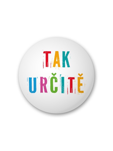 Placka s nápisem Tak určitě. Placky jsou nesmrtelné a stále frčí. Plackou vyjádříte co si myslíte, co posloucháte, koho volíte, kam patříte nebo hlásat nějaké moudro či hlášku.