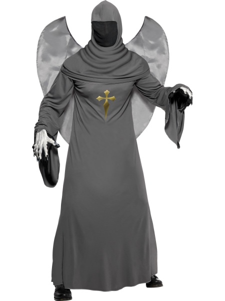 Kostým anděla nosícího smrt v univerzální pánské velikosti M a tvoří ho róba, kápě a křídla.