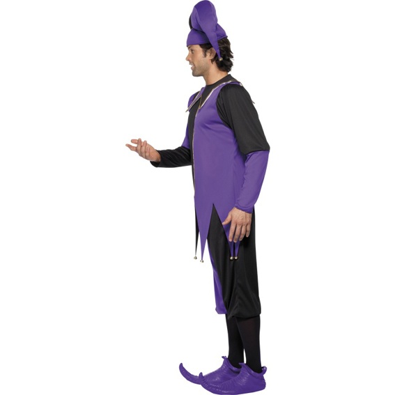 Kostým se skládá z fialovo-černé halenky s límečkem a rolničkami, kalhot a čepečku s rolničkami.