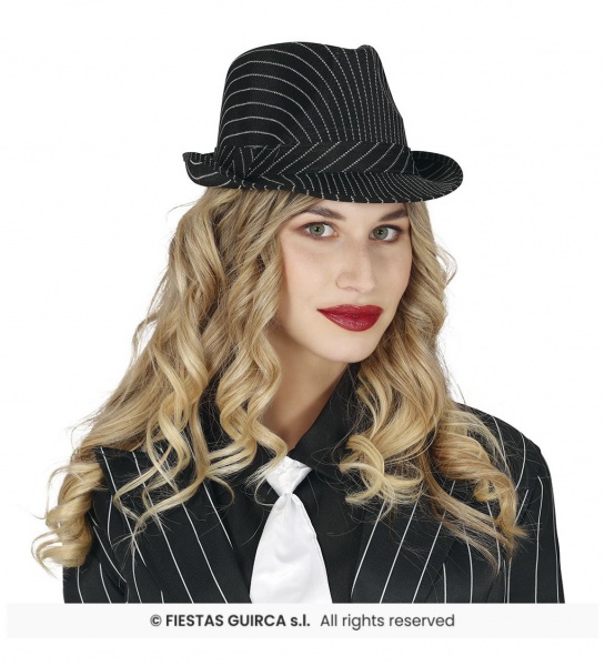 Černý pruhovaný gangsterský klobouk, který dokonale doladí váš outfit na tematické akce! Tento stylový doplněk vás přenese do doby prohibice a osloví všechny milovníky retro elegance. Perfektní volba na karneval, párty nebo jiná kostýmová setkání, kde zaujmete svým nezaměnitelným šarmem a originalitou.