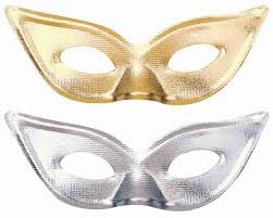 Elegantní škraboška ve zlaté nebo stříbrné barvě se hodí na každou silvestrovský večírek a oslavu.
