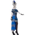 Dámský kostým zombie dívka ze salónu obsahuje mnodré šaty a čelenku do vlasů.
