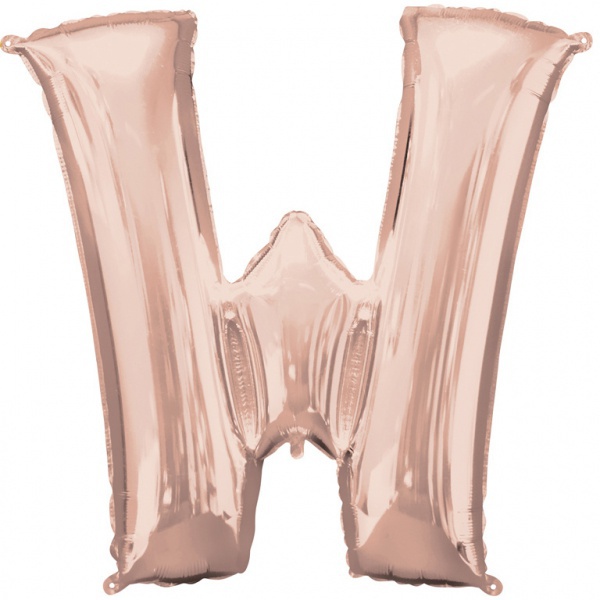 Růžovo-zlatý balónek ve tvaru písmene W je skvělou dekorací na narozeninovou oslavu