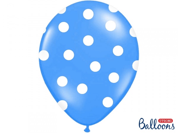 Pastelový tmavě modrý balónek - bílé puntíky - 6 ks