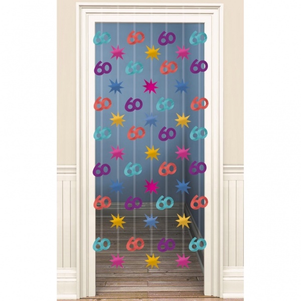 Závěsná dekorace tvořená z hvězd a barevných čísel 60, která se skvěle hodí na oslavu tohoto významného výročí.