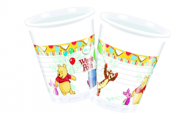 Plastové kelímky na motivy kreslené postavičky Medídka Pú, které se skvěle hodí na dětskou párty.