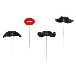Originální mini svíčky s knírky a pusou, díky kterým může vyzdobit narozeninový dort.