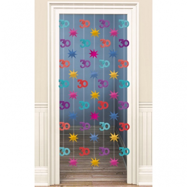 Závěsná dekorace tvořená z hvězd a barevných čísel 30, která se skvěle hodí na oslavu tohoto významného výročí.
