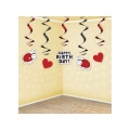Závěsné spirály s nápisem Happy Birthday se vzorem berušek a srdíček.