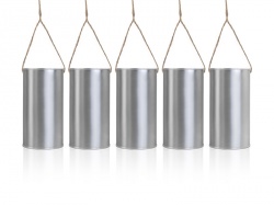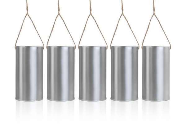 Plechovky k zavěšení ve stříbrné barvě (v balení 5 kusů).