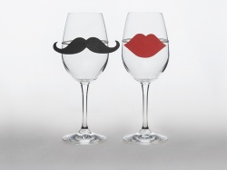 Skleničky na přípitek pro novomanžele s knírek a rty.