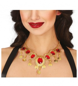 Tento nádherný náhrdelník s červenými rubíny přinese jiskru vaší tematické akci. Perfektně se hodí na kostýmové večírky, jako je karneval, nebo k rolím kartářky a pirátky.