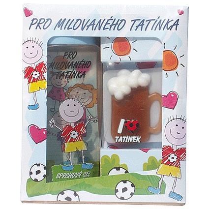 Dárkové balení sprchového gelu pro tatínka a tuhého mýdla ve tvaru piva.